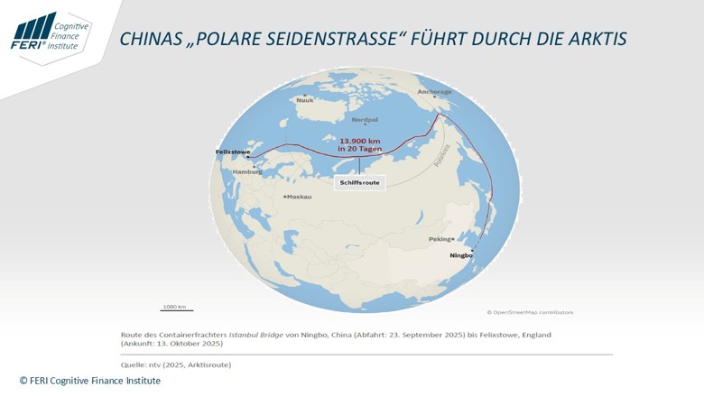 Mehr dazu in der aktuellen Analyse des FERI Cognitive Finance Institute "Kampf um die Arktis: Globaler Wettlauf um Rohstoffe, Macht und strategische Dominanz". Sie steht im Downloadbereich auf dieser Seite zur Verfügung.